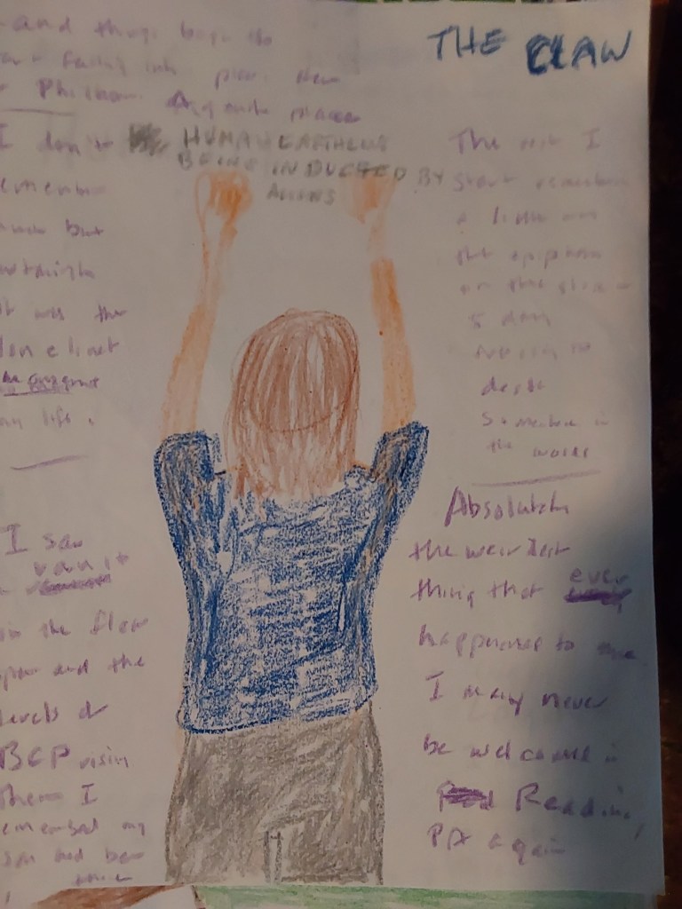 Got pissed on and left in the woods. Because of THE CLAW. At the psych hospital they drove me out of control I had just had an encounter with an alien and I was trying to figure out who to talk to, what to do. But there was nobody to help. I cant remember how it started but I was pretending to be “the Claw.” I can’t even remember what it meant. At a certain point I knew that I was in bad trouble.