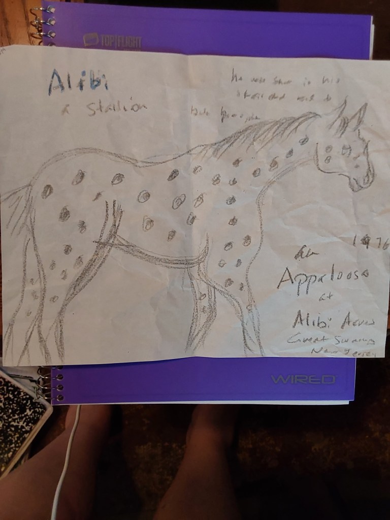 only the owner of the place, “Alibi Acres,” named afer the stallion, Alibi, was allowed to handle him. He kept the upper door locked, looking back I guess it was because Alibi bit passersby. Rather than that being the reason he bit people.