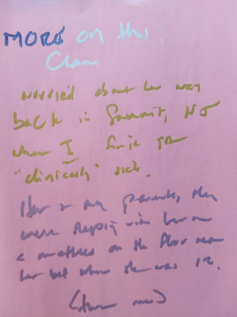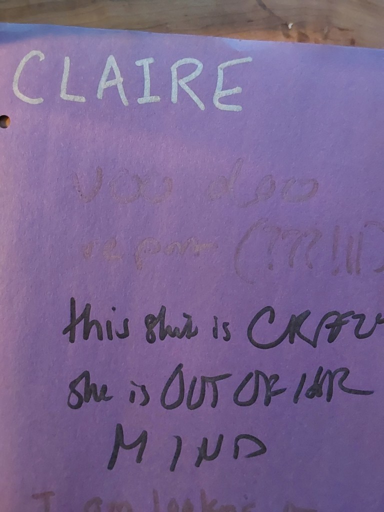 so, at Haven they took the gold notebook that had the piece of paper that i scrawled down a number on when someone called from Harrisburg when I was still a patient. They told me I had been admitted to st Jo’s ER on December 19, when I was supposed to be a patient on the psych unit. I already knew in the back of my head, I kept saying to myself “5 days in the woods” in the back of my mind, Not knowing what was going to happen.