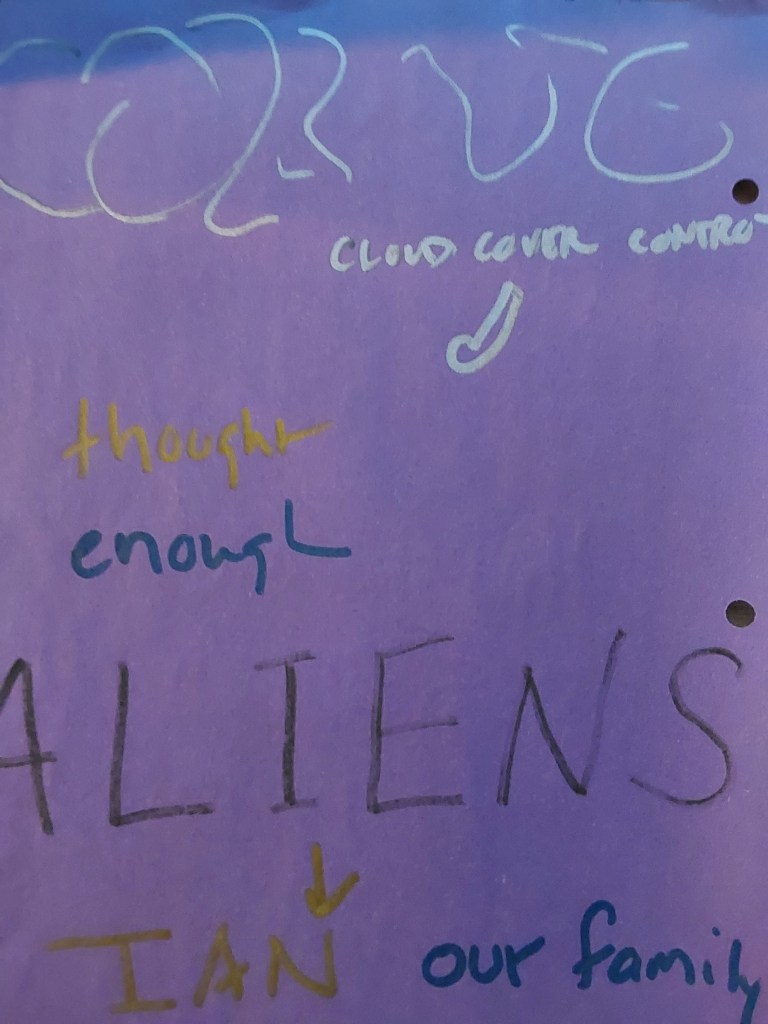 at Haven I was already talking about and beginning to draw about aliens. So that doesn’t all belong to Philhaven. I was also trying to safely talk to my sister.