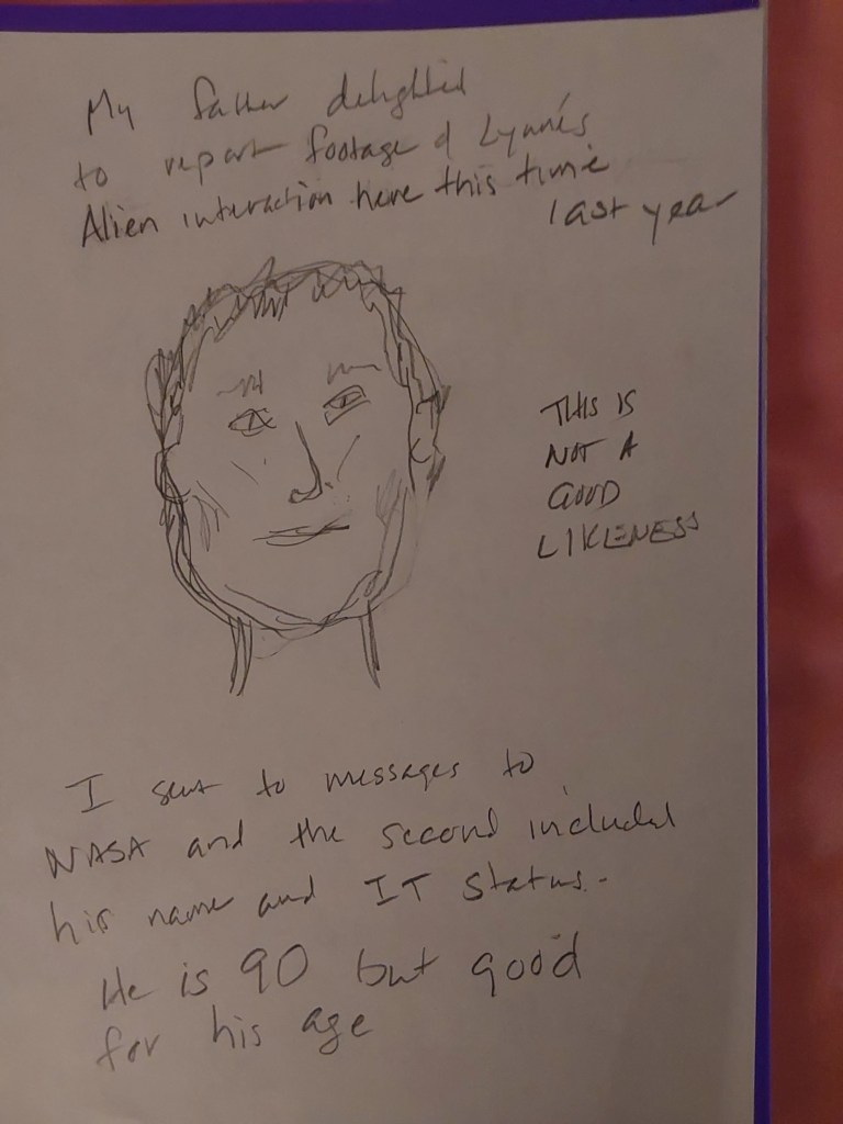 Finally, “I sent two messag3s to NASA and the second included his name and IT STATUS. He is 90 but good for his age.”