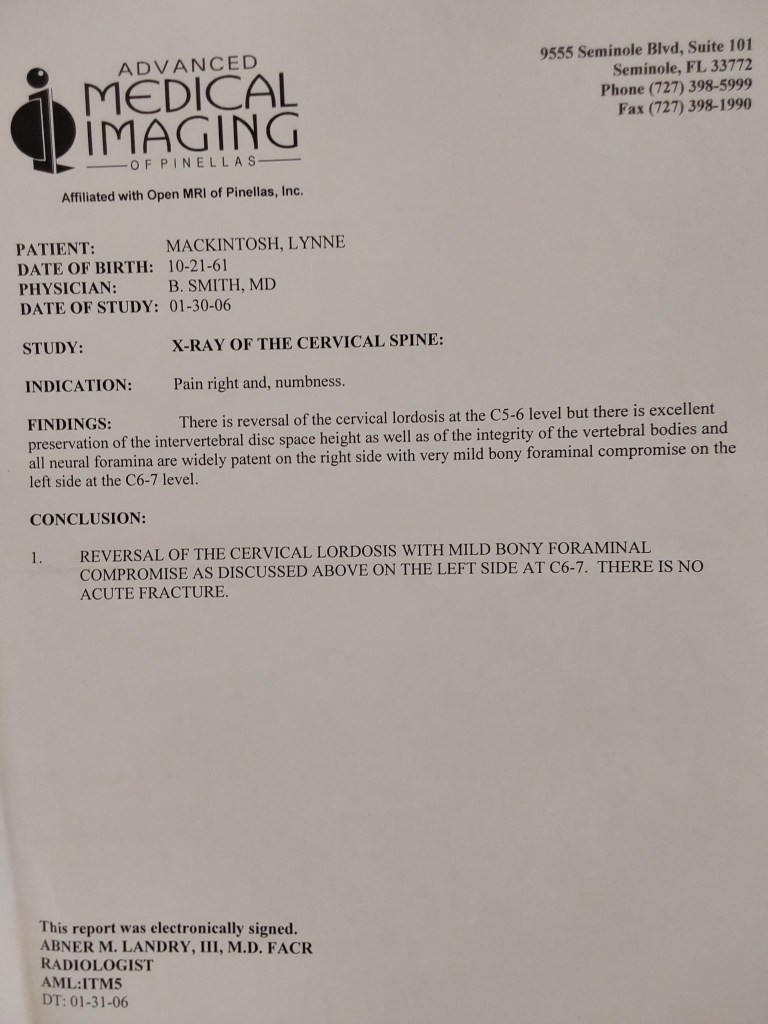 so, i drove to the hospital ER myself in Florida in the mid 2000s with my head pulling down to my left shoulder and got treated afterwards at Morton plant Orthopaedic center by dr Raphael Schwartz ( cant remember the name for sure; my mother blocked me from returning to him); for a curvature in my spine and a compression in my neck, in other words, a pinched nerve or something like that. My mother tried to deny this but i have this evidence. I took a mild muscle relaxant named Orphenadrine citrate for 2 years; my son went to boarding school; i did nothing. I dont know what to say. I dont know why peop,e want to harm me.