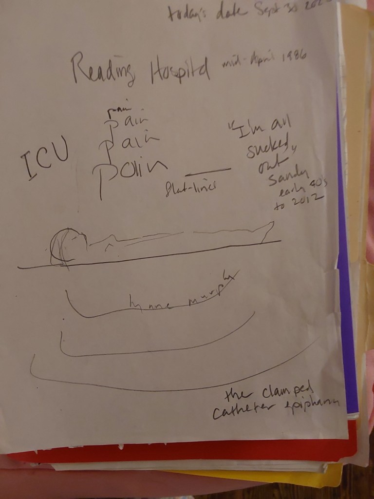 ive put it up here before, but, as at the time, it was overlooked and forgotten. This is me in agony in t h e ICU being slowly drained of my life and then having to get up and keep walking.