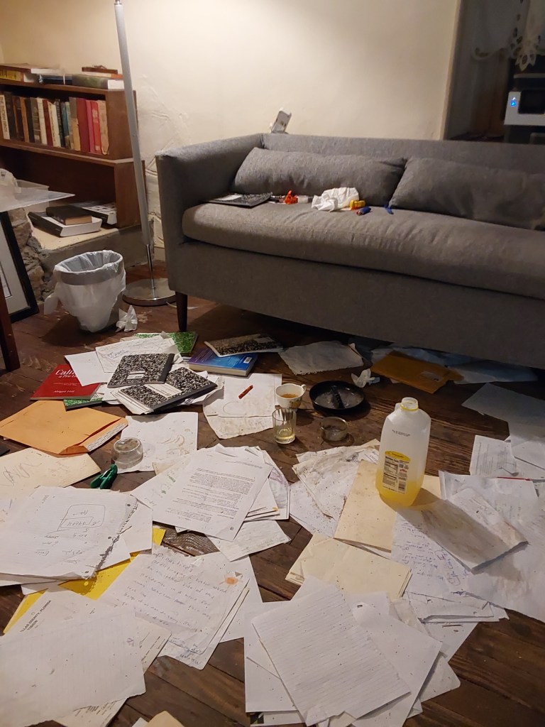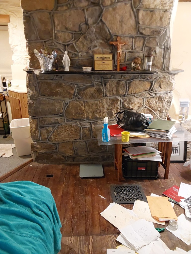 slpwly removing the remains of the alien carcass which had grown withing my untidy mess, nevee attended, sonce i was a little girl.