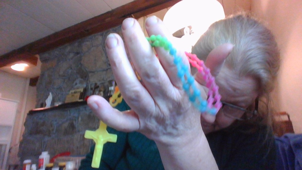 So, I picked up this funny little rosary to pray. Here I is a photo I took: