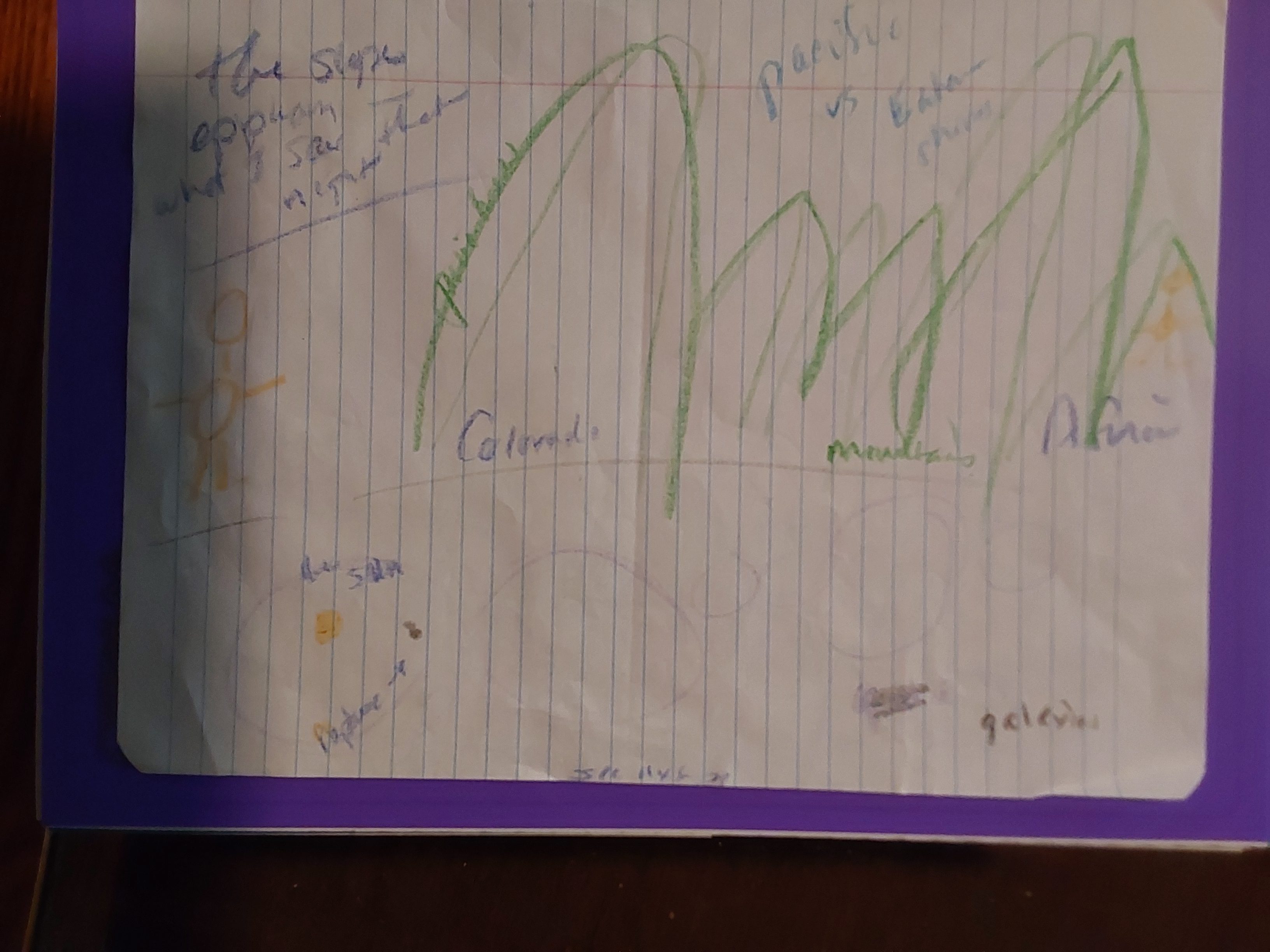 The slope epiphany. When i was lost in the woods for 5 days in December on a slight incline, an open space in the woods. I almost froze to death. I played games with numbers, letters and card suits in my head to stay awake.